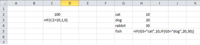 If the cell to the left says cat return 10, if it says dog return 20 otherwise return 30