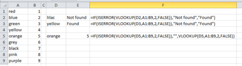 Another solution is to use if and iserror. This is a longer equation but does mean you can specify the result for a match and a non matching result.