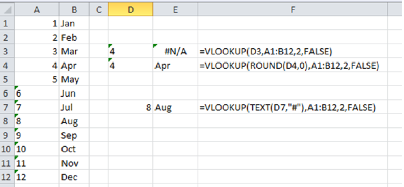 If the table is formatted as either text or number and the lookup value is the opposite, the lookup returns an error.