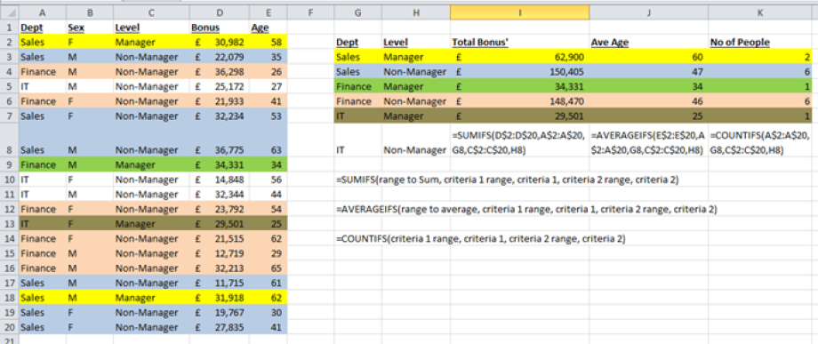 SUMIFS, AVERAGEIFS, COUNTIFS (Multiple criteria)
