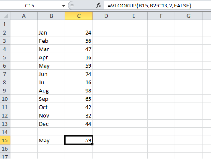 By entering a 2 in the column reference it therefore gives the answer from column C where it finds the match to "May" in column B.