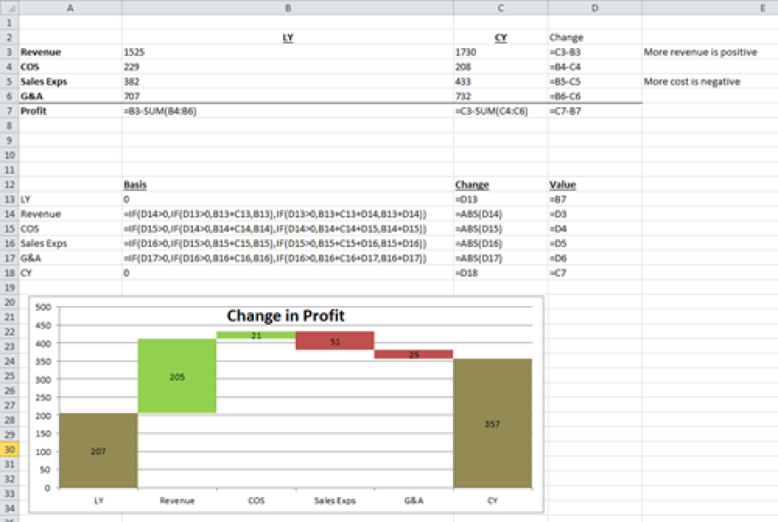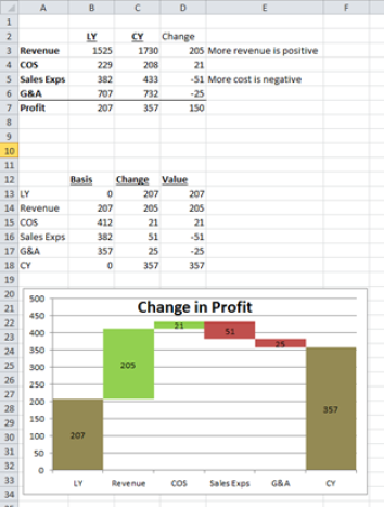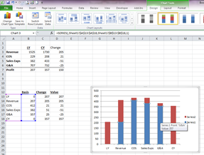 It is possible to setup formulas so that as your last year and current year numbers change the graph changes to reflect the new numbers.